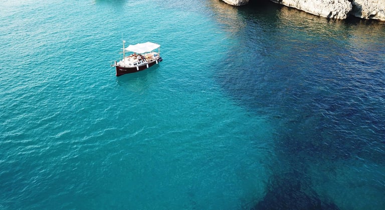 Si vamos a una isla no podemos no ir al mar, así que nos espera un paseo picnic en un llaüt entre aguas cristalinas.