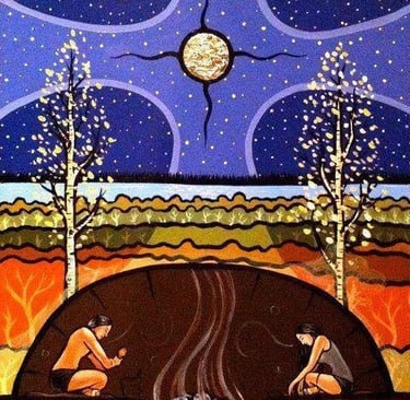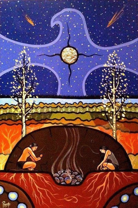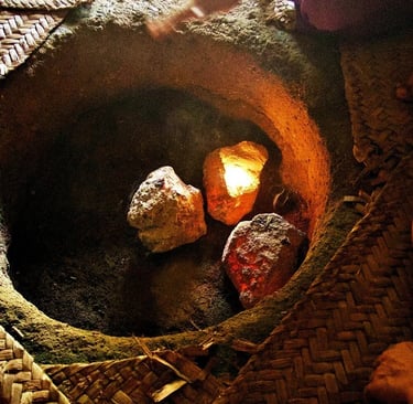 Es una especie de “horno” ovalado con espacio suficiente para varias personas. Este horno de vapor simboliza el vientre de la madre tierra, y la parte espiritual del ritual trabaja con los cuatro elementos: fuego, agua, tierra y viento.
