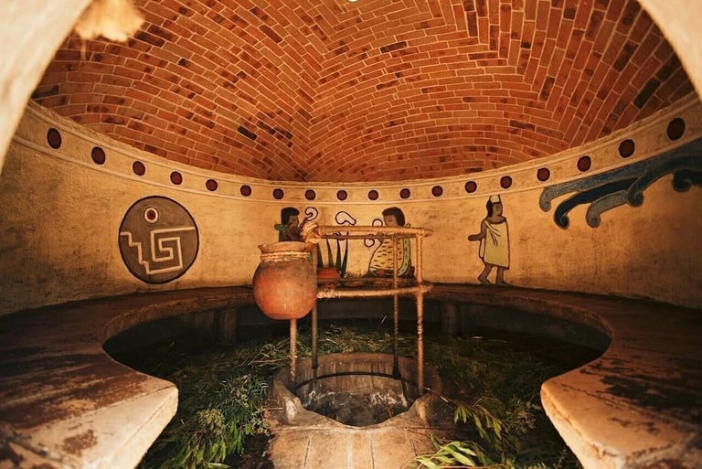 Estos baños, han sido usados por diversas culturas indígenas de Mesoamérica y Norteamérica con propósitos medicinales de desintoxicación por sudoración por las infusiones de hierbas.