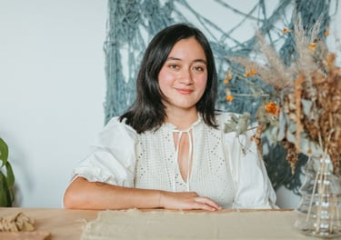 Diseñadora, artesana y fotógrafa, creadora de Muima, marca de objetos de decoración contemporáneos en ganchillo. Inspirada por sus estancias en Marrakech, colabora con artesanos locales y selecciona piezas marroquíes que combinan tradición y diseño actual.