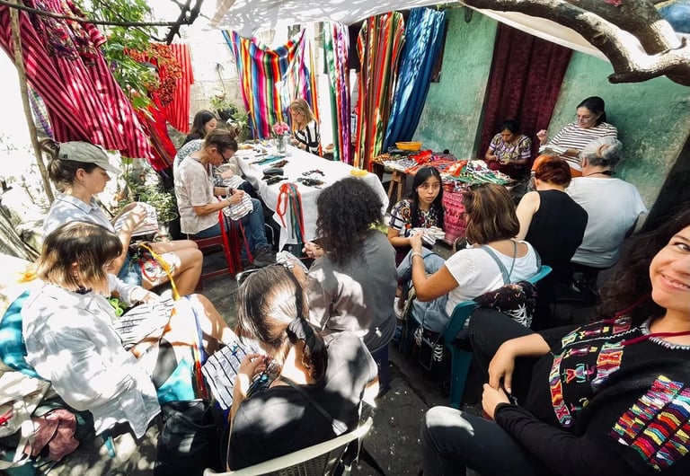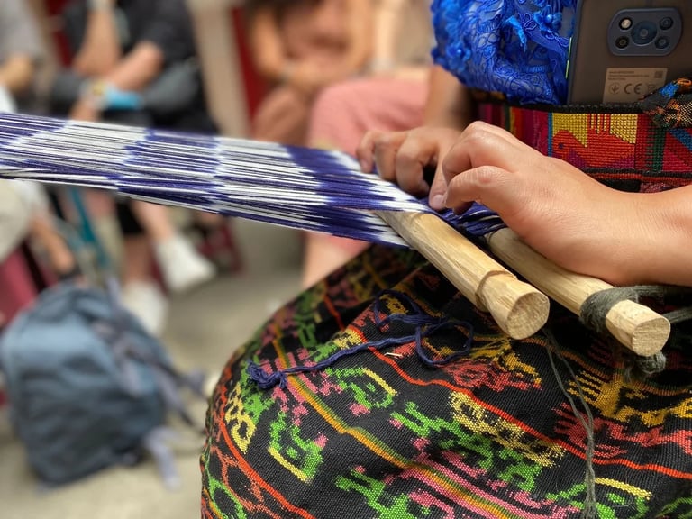 En noviembre del 2021 hicimos el primer viaje a Guatemala, más concretamente a Antigua y al lago Atitlán. Visitamos varias artesanas que viven alrededor del lago. Bordado, telar de cintura, tintes naturales, ikat… Cafetales, chocolate.. el mercado de Chichicastenango… Una experiencia increíble que nunca olvidaremos.