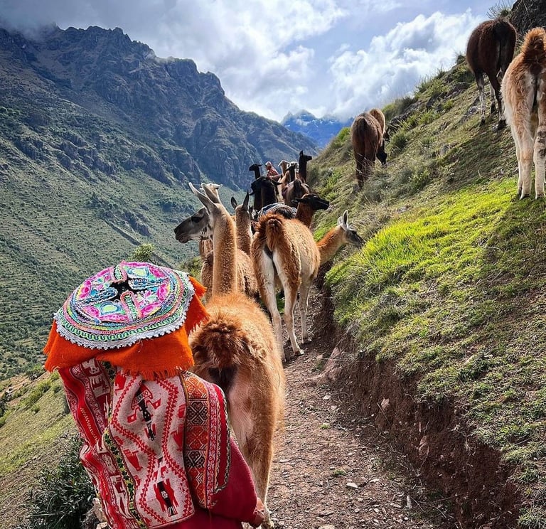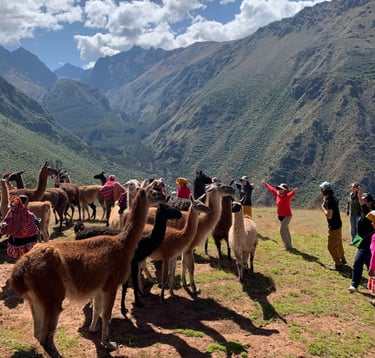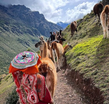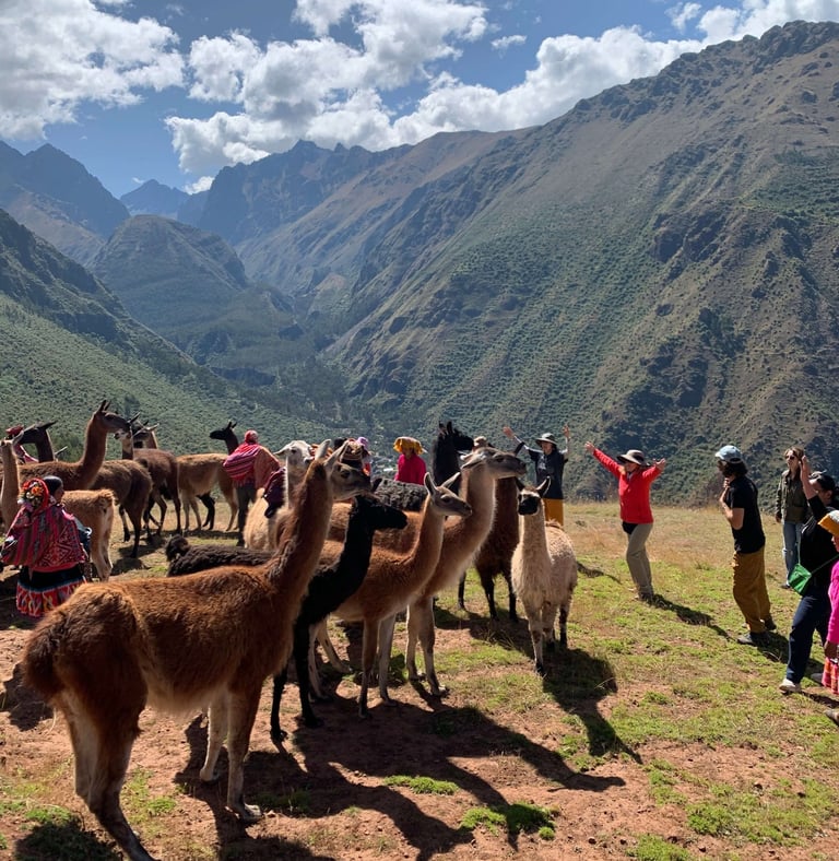 Conocerás a los miembros de los gremios locales de criadores de llamas y pastorearás las llamas del proyecto al estilo tradicional andino mientras aprendes todo sobre este noble animal nativo y ecológico