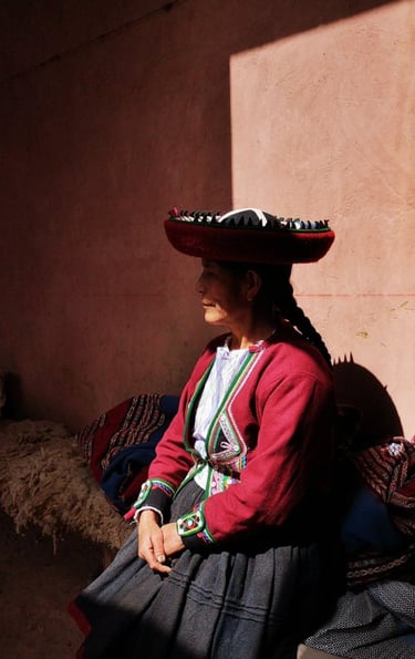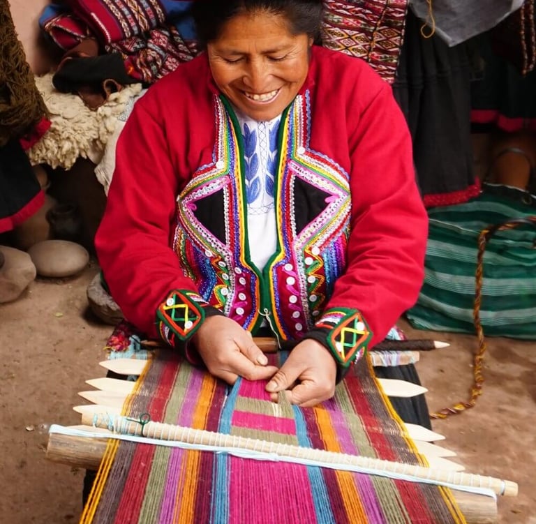 El Valle Sagrado es una de las zonas del Perú donde predomina el arte textil. A través del telar de cintura se confecciona, en muchos casos, la prenda de vestir identificativa de las personas locales. Su iconografía y colores muestran la identidad propia de cada comunidad.