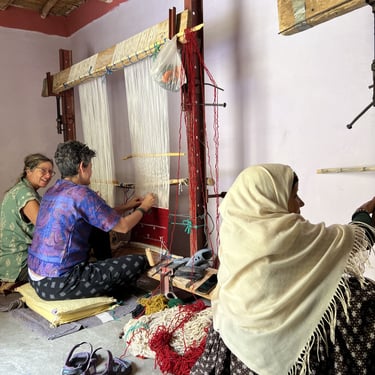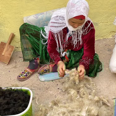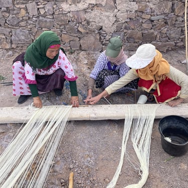 Casi todas las casas tienen un telar vertical, construidas muchas veces por las propias artesanas. El tejido es un proceso laborioso y colaborativo: varias mujeres pueden trabajar en una misma alfombra, que puede tardar semanas o meses en completarse.