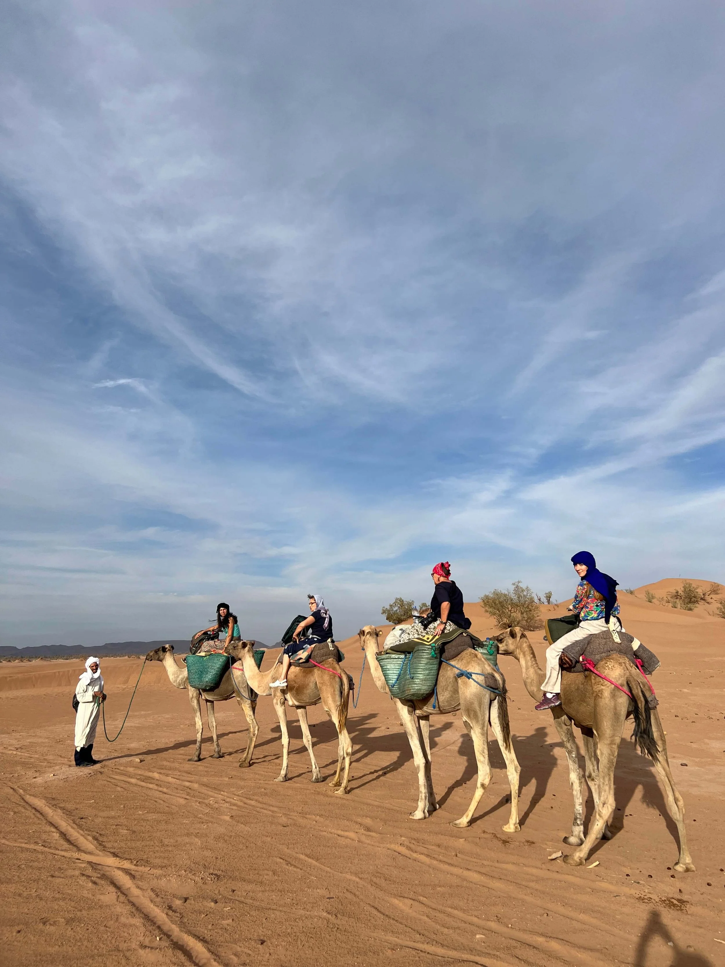 Así que en octubre volvimos con otro grupo de increíbles mujeres y pudimos llevar a cabo todas las actividades: taller de cestería con palmera y con caña en el palmeral, visitamos una asociación de mujeres artesanas, dormimos en el desierto, visitamos los talleres de cerámica de Tamegroute, bailamos en una kasbah, vimos como cocinaban pan en la arena y un montón de experiencias más que difícilmente olvidaremos.
