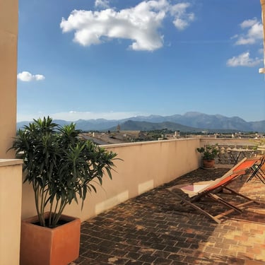 Nos alojaremos en un pequeño hotel familiar en Llubí, en el corazón de Mallorca. Una mezcla de tradición y comodidad. Tiene un jardín donde se sirve el desayuno y una terraza en la azotea con vistas a todo el pueblo.