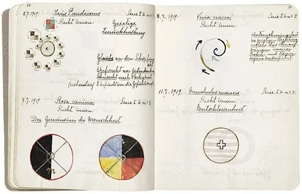 Formó parte del grupo de mujeres conocido como Las Cinco, todas interesadas en lo paranormal y el misticismo. A través de prácticas rituales, registraron en un libro un sistema de pensamiento místico en forma de mensajes de espíritus superiores llamados Los Altos Maestros. Las Cinco experimentaron con el dibujo automático y el uso de la geometría como lenguaje visual para conceptualizar lo inexplicable. De estos maestros, Hilma recibió un encargo muy especial: crear “Las pinturas para el Templo", 193 obras de gran formato que realizó entre 1906 y 1915.